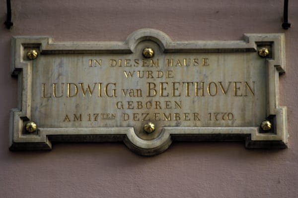 Diese Tafel ist am Geburtshaus des berühmten Komponisten Ludwig van Beethoven angebracht. Tatsächlich war der 17.12.1770 der Tag seiner Taufe, sein genaues Geburtsdatum ist unbekannt.