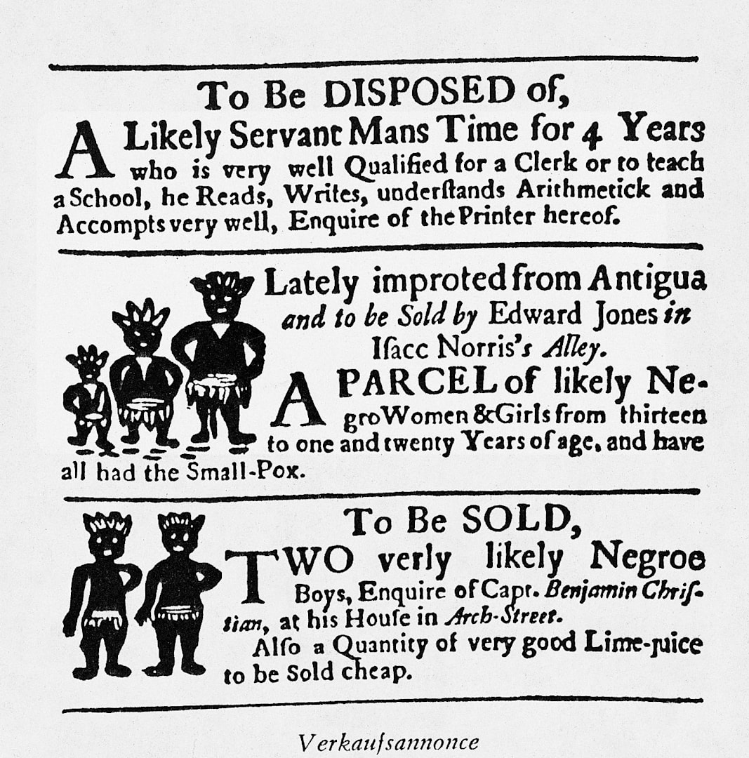 SklavereiDer Sklavenmarkt AfrikawissenmediaSklavenhandelSklavenverkaufsannonce in einer afrikanischen Zeitung Informationen zum ArtikelQuellenangabe